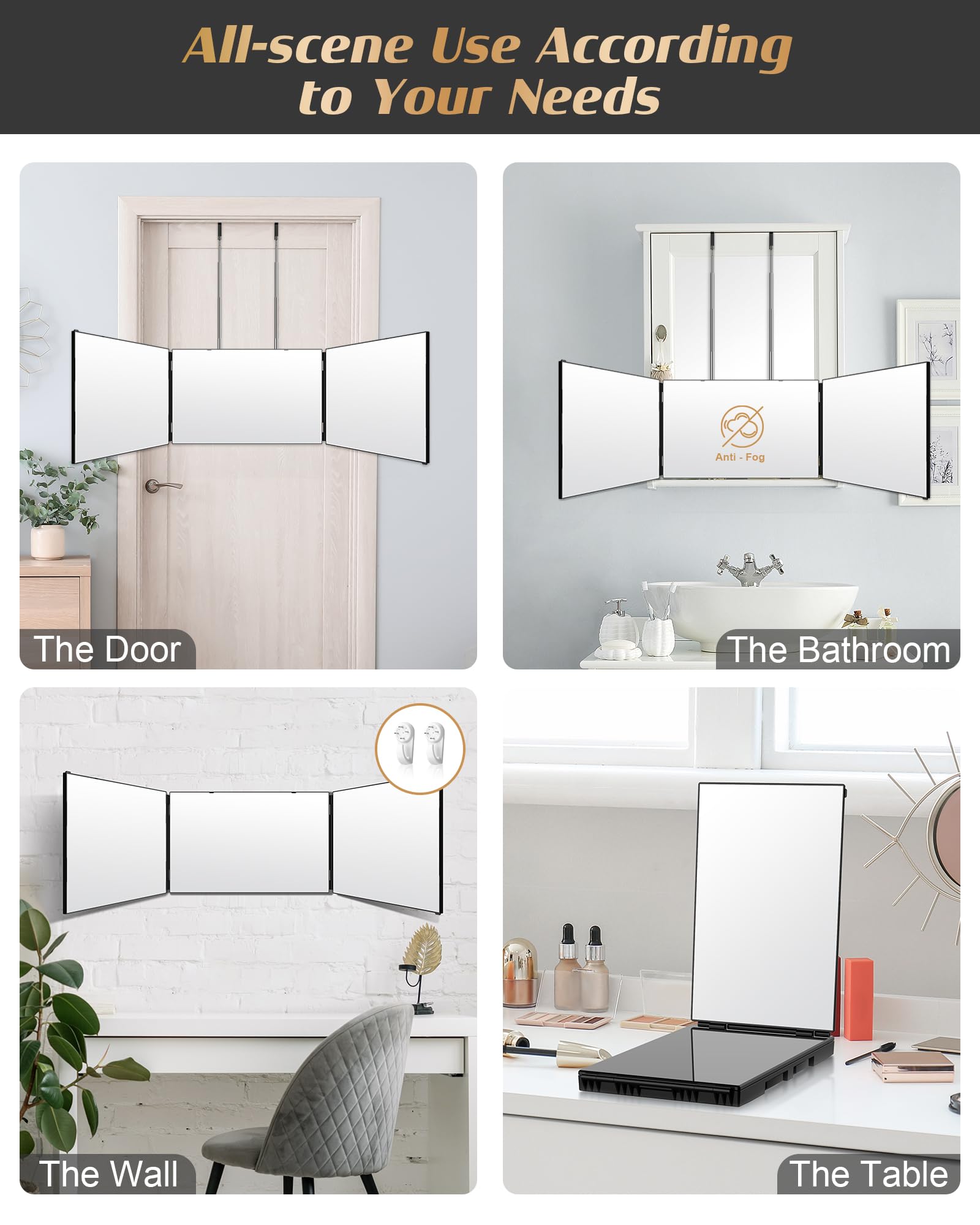 - 【Clear & Anti-fog HD Glass】 No amplification, no deformation, no dizziness, and better imaging effect. The barber mirror is suitable for careful hair repair, personalized hair dyeing, braiding, and shaving. With the assistance of this three-sided mirror, you can make the details more perfect.